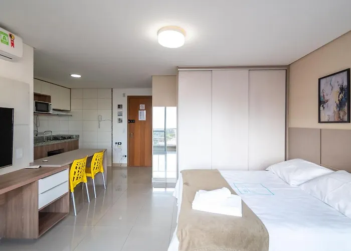 Localizado no bairro de Setor Bueno a 25 minutos de distância do Jardim Zoológico de Goiânia, o apartamento Flat Super Aconchegante no Bueno de 36 m² tem capacidade para acomodar até 6 hóspedes. Este apartamento dispõe de acesso a piscina.